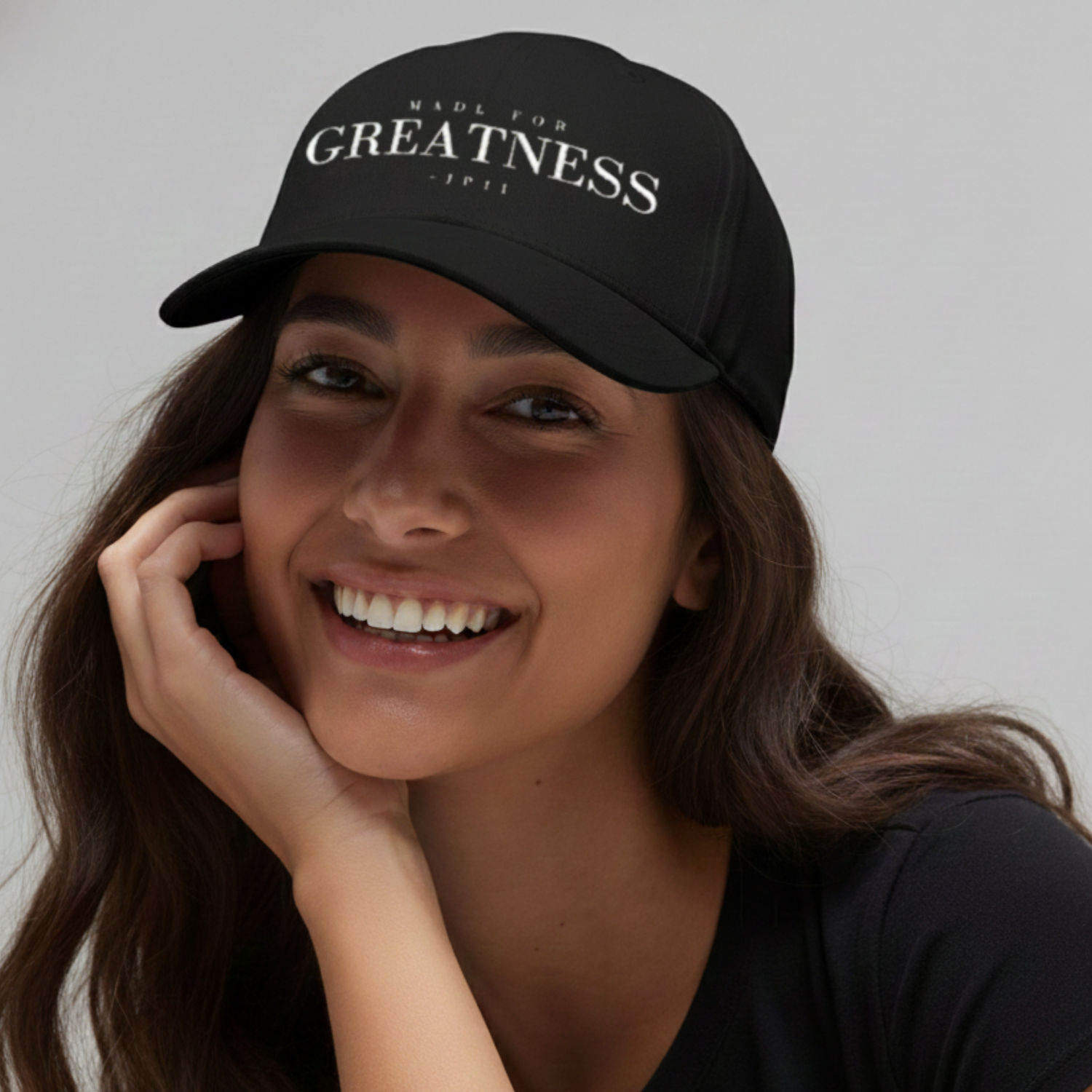Clean, minimal embroidery keeps the message close: you were made for greatness. Not success-greatness — God-shaped greatness. A subtle reminder stitched right into your day.”