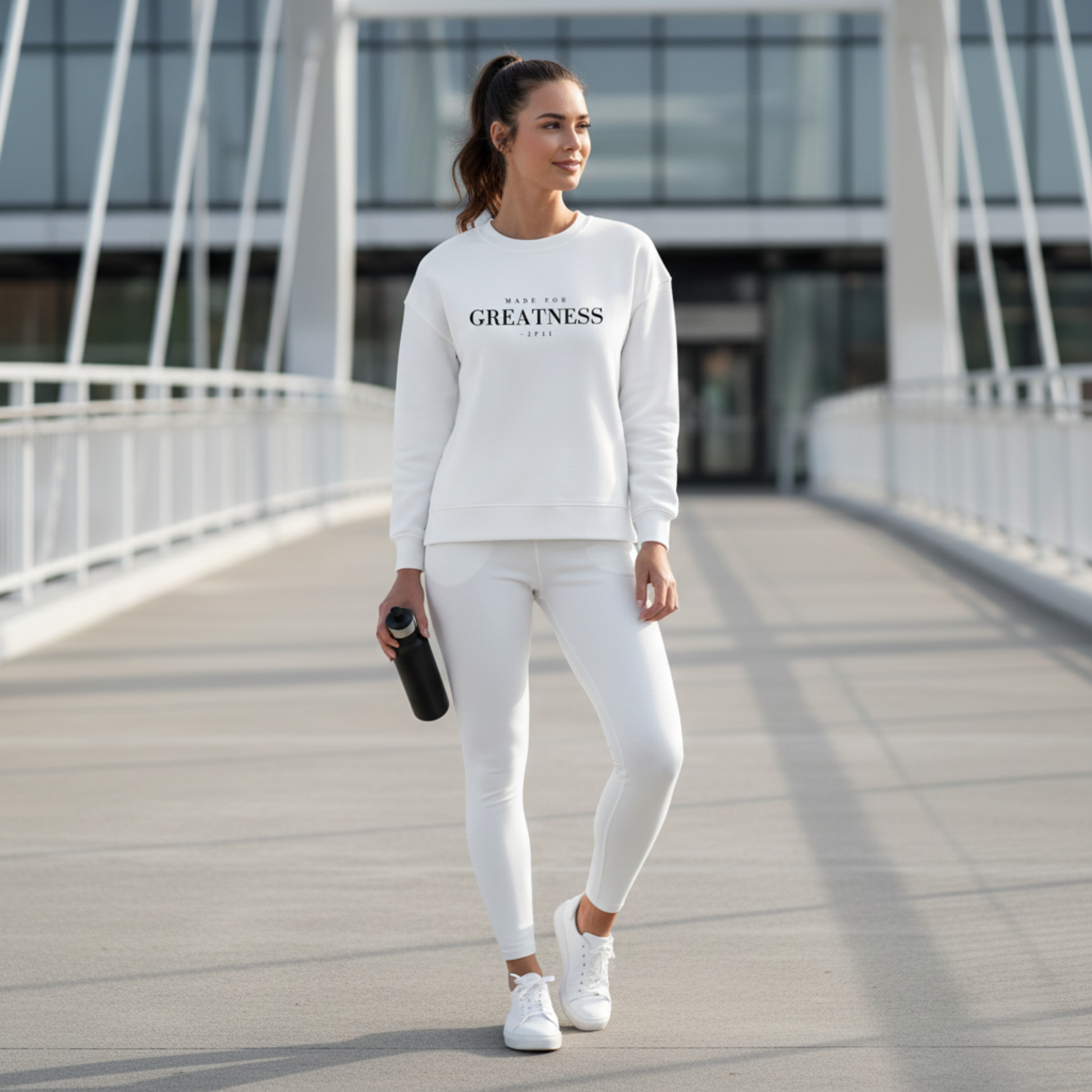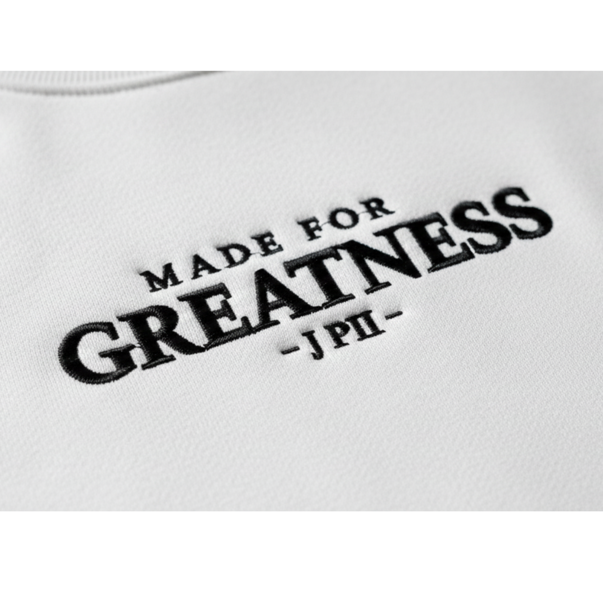 The clean, minimal embroidery carries the message you live by: Made for greatness — not the world’s version, but God’s. A quiet, powerful reminder placed right where your heart is. This subtle detail reinforces your identity and keeps you rooted in truth as you move through your day, no matter what it holds.