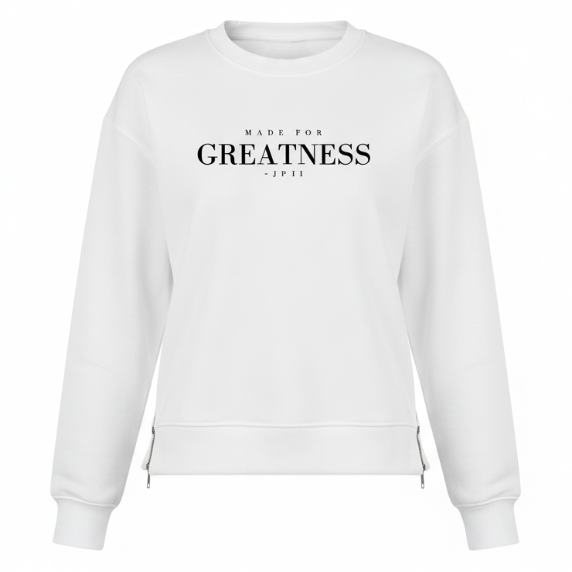 Meet the pullover designed for real Catholic womanhood. Whether you’re headed to the gym, running errands, chasing little ones, or settling into prayer, this piece moves with you. Inspired by Saint John Paul II’s true meaning of greatness — a life rooted in God, virtue, and holiness, not perfection or worldly success — this pullover keeps your day grounded in purpose while giving you the comfort and confidence you’ve been craving.
